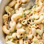 Haitian style, creamy macaroni pasta salad, served cold